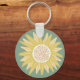 A beautiful hand-drawn giant yellow sunflower on a light green background.