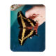 The Giant Swallowtail Butterfly. The largest butterfly in North America and Canada. With their large black wings, bright yellow stripes, and curled black antenna. They are truly one of the most beautiful butterflies. Their host plant are citrus trees. This one was planted on my lime tree. The female lays her round brown eggs on the smallest, freshly grown part of the plant. Enjoy this lovely Giant Swallowtail Butterfly photograph on magnets in my store! Copyright Photograph by Deborah Carr