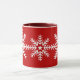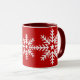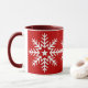 Giant White Snowflake on a Red Mug. A Cheerful Winter Design for your Hot Chocolate and Coffee Mugs to sit around the hearth on Christmas. Great to own or give to friends and family under the tree.