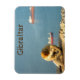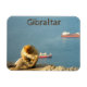 Barbary macaque at the top of the Rock of Gibraltar, with the Bay of Gibraltar and shipping in the background