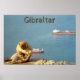 Barbary macaque at the top of the Rock of Gibraltar, with the Bay of Gibraltar and shipping in the background