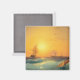 Oil painting by Ivan Aivazovsky, depicting ships and a rowboat near the Rock of Gibraltar. With a clear sky, and a bright orange sunset in the backgound.