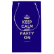 Based on the original Keep Calm and ... poster this cream and blue Keep Calm and Party On Gift Bag features a custom designed font that matches the original closely.