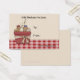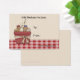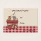 Business card in tan with red gingham and basket of soaps and toiletries. A great hang tag or gift tag. Perfect for soap makers or those who make gift baskets.