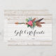 Gift Certificate Bohemian Feather Arrow Rose Card