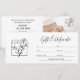 Create a stylish and professional Gift Certificate for your business. This editable template features modern script typography and can be personalized with your company logo and a photo to showcase your products or services. Customize the text with your business name, contact information, any service or product restrictions, and certificate terms and conditions. Space is provided for handwritten details such as recipient's name, gift giver, value, issue date, expiry date, and a unique voucher code. Make your gift card stand out with a creative tagline that reflects your services. This elegant design is ideal for various businesses, including makeup artists, hair and beauty salons, massage therapists, stylists, boutiques, small businesses and many others. Printed colors: black and white, or customize the color to align with your brand.