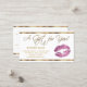 Gift Certificate Card. So Pink glitter lips on a black background with gold accents. (For matching products and designs type in Keyword: GLITTER LIPS ) (Note: Not Real Glitter, this is a print) ⭐This Product is 100% Customisable. Graphics and text can be deleted, moved, resized, changed around, rotated, etc... ⭐99% of my designs in my store are done in layers. This makes it easy for you to resize and move the graphics and text around so that it will fit each product perfectly. ⭐ (Please be sure to resize or move graphics if needed before ordering) You can also "TRANSFER DESIGN" on other Zazzle products and adjust the design to fit most of Zazzle items. (button is down on the right side of the page) Some of the text graphics have ready to fill in the box(es) or you can Click on the "CUSTOMIZE" button to add, move, delete, resize, background colour or change any of the font or graphics. The design is made with high resolution vector and/or digital graphics for a professional print. ⭐NOTE: (THIS IS A PRINT. All zazzle product designs are "prints" unless otherwise stated under "About This Product" area) The design will be printed EXACTLY like you see it on the screen and on the product...so please make sure when you do your changes on the resizing of any of the graphics or text that it fits in the areas correctly and that your spelling and wording is how you like it to be in size, colour and font. If you have any questions about the "DESIGN ONLY" or need help please contact me at my direct email - siggyscott@comcast.net or visit my store link: http://www.zazzle.com/store/designsbydonnasiggy (Copy and Paste) I'll be happy to help. ⭐ ALL OTHER QUESTIONS (such as the shipping, a refund, the printing is incorrect, or the product itself, etc...) PLEASE CONTACT ZAZZLE OR THE MAKER ⭐DIRECTLY⭐. Thank you for the support and stopping by my store - DesignsbyDonnaSiggy. © Donna Siegrist⭐⭐⭐ ZAZZLE promises 100% satisfaction.