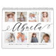 Send a beautiful personalised gift to your Grandma (Abuela) that she'll cherish. Special personalised grandchildren & family photo collage calendar to display your own special family photos and memories. The front cover design features a simple 8 photo collage grid design with "Abuela" designed in a beautiful handwritten black script style. Each photo is framed with a simple gold-coloured frame. Customise with grandchildren & family members' names. Each month features a single full-size image with the month written in elegant black calligraphy displayed slightly over each photo.