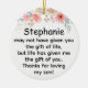 I was extremely happy to find a tree ornament for my Occupational Therapist daughter. (I bought one a few years ago for my Paramedic son) & prior to seeing this I was trying to work out how I could create something similar for her. Unfortunately my first order was deemed lost in the mail which meant it didn't arrive in time to give my daughter when she finished Uni. However the Zazzle Support team were fabulous & organised a replacement quite quickly. My daughter is very happy. Thank you. Nice ornament, love the colours