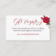 Wedding enclosure cards for gift registry. Direct guests to a wedding website to find registry information by customising these small cards that come in bulk. White cards have red script at the top, a short paragraph in the centre, and a website URL in red printed font. A rose stem with bloom and buds, decorates the upper righthand corner. Reverse is solid red. Enclose a card with an invitation to an any party for the couple, bridal shower, and wedding itself.