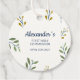 Stylish gift tag featuring a soft, minimalist pattern of leaves and branches. Customise the front with name, date, and “First Communion,” plus an editable thank-you message on the back perfect for favours, gift bags, or elegant event accents.