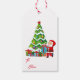 This holiday gift tag is shown in a festive Christmas Santa print.
