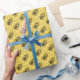 Bees on honey comb cells, is replicated on an angle across paper. Background is pale yellow.