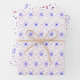 Stars in enlarging circles around large central star. Large star is dark blue with smaller stars shading through purple to red as they move outward. 3 sheets on which different sizes of the pattern is tiled.