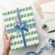Green holly leaves and berries run in multiple rows the length of the paper.