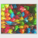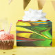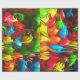 A brightly coloured, abstract gift wrap paper illustration depicting melting M&M candies .