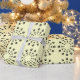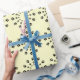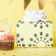 Pawprints in a circle are replicated into three concentric circles of gradually smaller prints. The Three circle pattern is replicated to resemble snowflakes - black prints on pale yellow background.