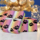 Graphic image of polydactyl (seven toes) paw prints on a rainbow coloured background.