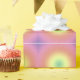 Rainbow colours in a 360 degree circle, the merge of pattern block creates a purple and pink "star" Colours - green, yellow, orange, red, pink, purple.
