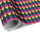 Diamond shape in rainbow striations is repeated multiple times over the product. The coloured diamonds are spaced on black background. Diamonds are colours of the rainbow from blue at the top, through purple, red, orange, yellow, and green.