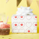 Solid red hearts are centred inside red wire outline hearts. Pattern shows rows of two enclosed hearts with a single empty heart between, alternating with one enclosed heart separated be two empty hearts.