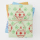 Large round Christmas balls are surrounded by a multitude of small balls. Each sheet is different colour combination. Pale green with dark green and red balls. Light blue with dark blue and purple balls. and Orange/brown with orange and yellow balls.***Part of coordinated set - BKM2a.