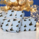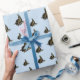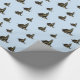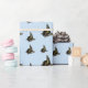 Close-up photograph of yellow and black, swallowtail butterfly. Image is replicated, showing 3 small and one larger, then this group is replicated across the light blue background (may be customised to your choice of colour).