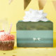 White tern with black head is gliding over marshland, water and sky in background. Image is tiled to form bands on paper.