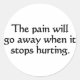 The pain will go away when it stops hurting! This funny design, available on t-shirts, hoodies, hats, bags, mugs and other gift idea, is sure to get a laugh out of surgery patients, nurses, physical therapists, doctors or anyone helping people recover from sickness and injury.