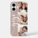 Celebrate her grandma status with this special phone case featuring three treasured photos of her granddaughter, grandson, or grandchildren. The nickname "Gigi" appears along the left side in elegant calligraphy script lettering for a unique personal touch.