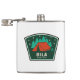 The flask itself is fine. It’s a cheap flask, obviously bought in bulk, however am prepared to overlook that. Given that it is a personalized item, I would have liked to have seen gift boxing instead of the generic packaging. Terrible printing, and/or quality. It’s a cheap, tacky vinyl. It is not cut straight and is also applied in a way that it is overhanging the bottom, causing the glue to catch on items and it will eventually roll and tear, damaging the wrap.