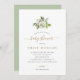 Affordable custom printed baby shower invitations with a simple painted floral arrangement in white, green and faux gold foil accents. Personalise the template with your event details or use the design tools to customise the text, choose any background colours and edit the fonts to create your own unique girl baby shower invitation design. Reverse side features a pretty sage green background or use the space to add additional text or photos if needed. This beautiful neutral floral design is perfect for any season.