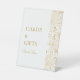It is sturdy than I expected. Was worried about the material being flimsy but it is not. It is printed on some sort of plastic material. It should serve well at our wedding as long as wind isn’t too bad. Otherwise we will put some paper weights behind it and should be fine.