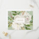 Affordable custom printed wedding RSVP postcards with an elegant painted floral border in white, green and gold colours. Personalise the design with your wedding RSVP info and meal options for guests. Use the design tools to customise the text, choose any background colour and edit the fonts and colours to create your own unique wedding reply card design. This beautiful neutral floral design is perfect for any season.