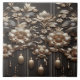 Gilded Botanical Symphony on Charcoal Noir Ceramic Tile