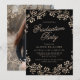 The chic graduation party photo invitation features a gilded bronze faux foil laurel design, elegant script font, placeholders for your custom text, and a place for a photo on the back of the invite.
