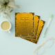 Ditch the diamond price tag, not the dazzling details! This budget-friendly beauty adds a touch of glamour to your special day, and is your gateway to saying "I do" in pure, golden elegance, minus the hefty splurge. Imagine your guests gasping in awe as they unfold a masterpiece of elegant script and intricate swirls, all bathed in the warm glow of golden hues. Featuring intricate gold accents and ornate details, it's the perfect blend of style and savings. Dive into luxury without breaking the bank. Let the celebration begin in golden splendour!