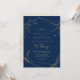 This gilded floral navy blue and gold wedding invitation card is perfect for an elegant wedding. The modern boho design features a whimsical arrangement of faux gold foil hand drawn flowers, leaves and botanicals on a navy blue background.