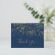 Gilded Floral Navy Blue & Gold Thank You Postcard