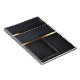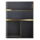 This notebook showcases a bold geometric composition of deep charcoal fields and refined gold accents, creating a look that is both modern and timeless. The layered design suggests structure, balance, and intention—ideal for capturing ideas, plans, and creative work. Elegant without excess, it’s a sophisticated everyday notebook suited for professionals, artists, or anyone drawn to minimalist luxury and thoughtful design.