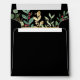 These gorgeous holiday wedding envelopes features an interior design with elegant botanical bouquet with faux gold leaves, Christmas greenery, and red holly berries on a modern black background. There is room for your pre-printed return address on the back flap. Perfect for your elegant winter wedding.