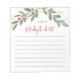 This elegant holiday to-do list notepad features modern green, red and gold watercolor leaves and berries with trendy red script typography. The perfectly stylish way to keep track of all your Christmas errands!
