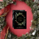 These gorgeous holiday photo cards feature a gold foil geometric frame with matching gold leaves, elegant Christmas greenery, and red holly berries on a dark, black background. Trendy gold typography says "Happy Holidays to you." Your personal photo goes onto the back of the card.