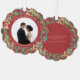 This gorgeous newlyweds holiday ornament card features a lush, festive wreath of gold leaves, Christmas greenery, and red holly berries on a modern red background. Your personal wedding photo goes in the centre along with the words "Married and Merry", and there is even a spot for your name and the year. Add a personal message to the back. A perfect keepsake from the newly married husband and wife.