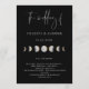 Elegant watercolor gilded moon phases, wedding program. Background features black colour background.