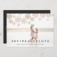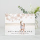 Simple and elegant holiday photo card lets your favourite family photo take centre stage. Chic design features a full bleed horizontal or landscape orientated photo, with your family name and custom holiday message overlaid at the bottom in dark charcoal grey. A sprinkling of faux rose gold foil snowflakes completes the design. Add two additional photos to the back, along with additional optional custom text.