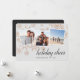 Elegant and festive holiday photo card features three square photos in a collage layout, with a sprinkling of faux rose gold foil snowflakes on a pastel gray background. "Holiday cheer" appears along the bottom in white calligraphy script lettering, with your names or family name and the year beneath. Customize the back with an additional photo and personal message if desired.