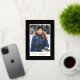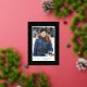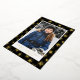 Elegant holiday photo card featuring your vertical photo framed by beautiful gold foil snowflakes with a black background. Personalise the gold foil snowflake holiday card with a custom holiday greeting and your family name. The foil Christmas card reverses to a solid black background.