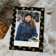 Gilded Snowflakes Photo Black and Gold Foil Holiday Card