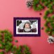 Elegant holiday photo card featuring your horizontal photo framed with a white border and beautiful gold foil snowflakes on a purple background. Personalise the gold foil snowflake holiday card with a custom holiday greeting and your family name. The foil holiday card reverses to display a solid purple background